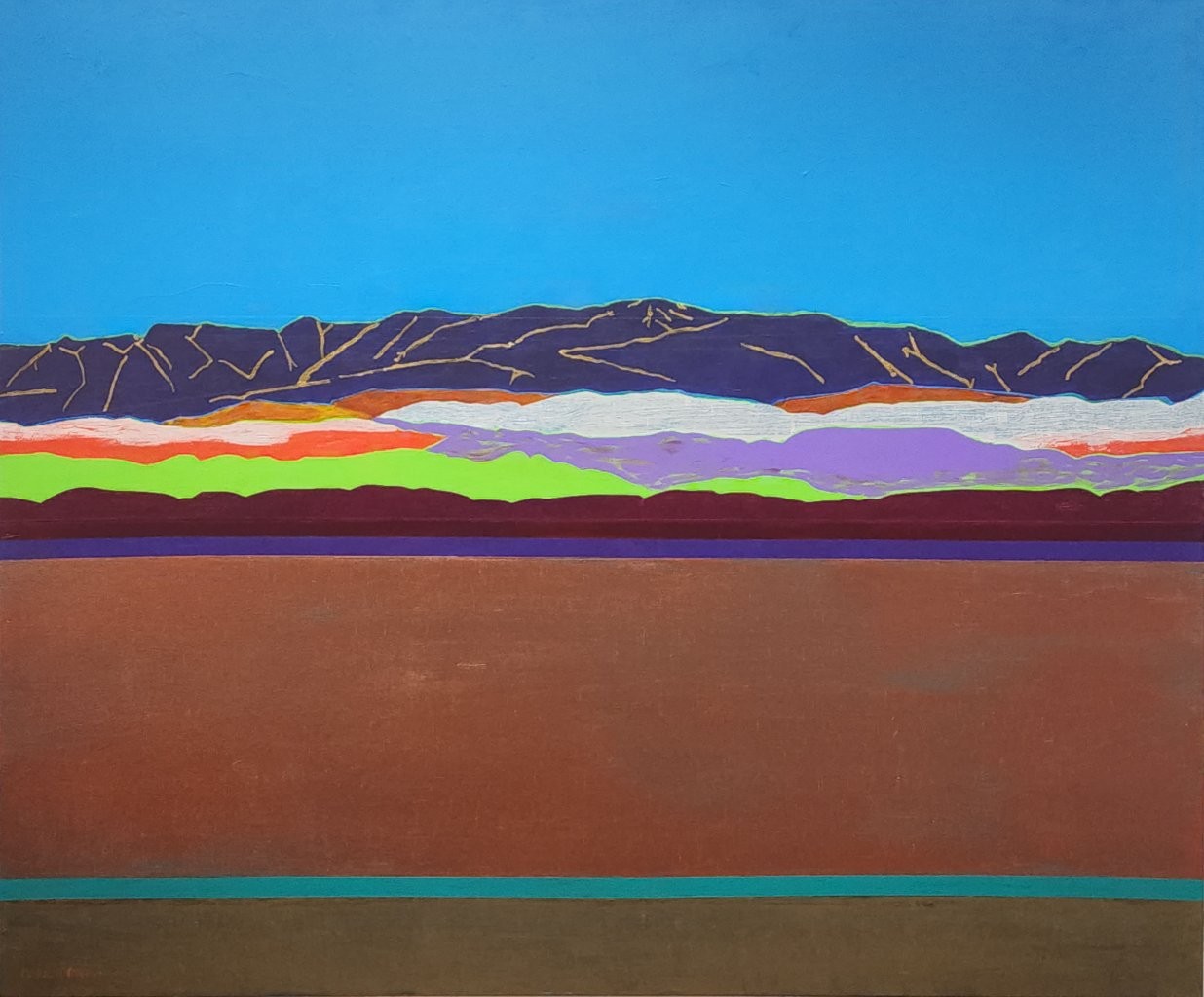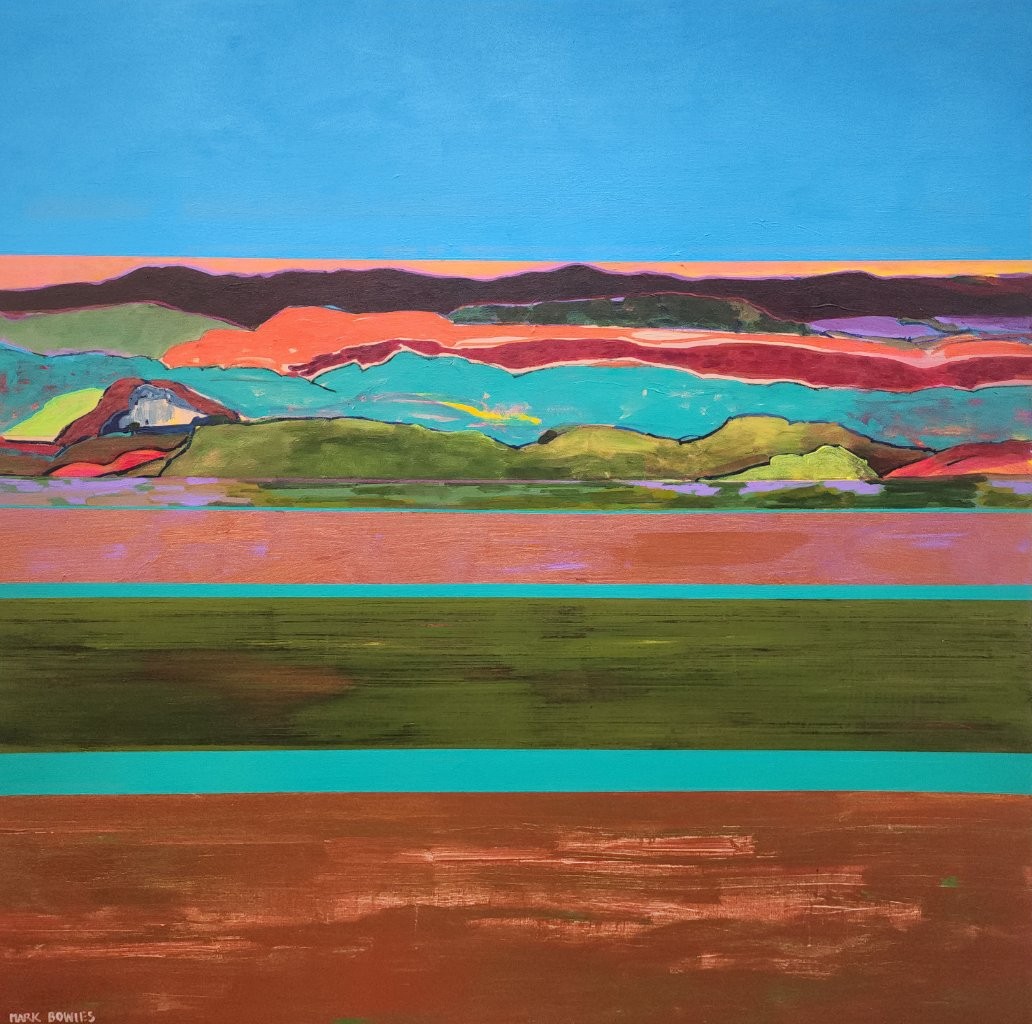 “New energy for a new year” my daughter Jessica said when she first saw my new work. I think that summed it up pretty well. I started to feel a little redundant in the work I was producing last year. Not everything had that spark or energy that artwork can have. I can tell that a painting is finished when a painting can live outside of the studio by itself. It rises to the occasion where it needs to be untethered from me and go out into the world. This new work I am so pleased with is satisfying something. I need to continue on this journey with paintings to keep me engaged and committed with art. I have re-examined the horizon line and where I place it. It dedicates what and where I focus every painting. I’ve lowered my view to consume more of terrain and maybe less of atmosphere. Re-examining how I paint it, what colors I use that can show temperature, vegetation, minerals of the earth, time of year — and trying to have a unique way of expressing myself and questioning the way a landscape painting can be done that is unique to me and shows my voice.
